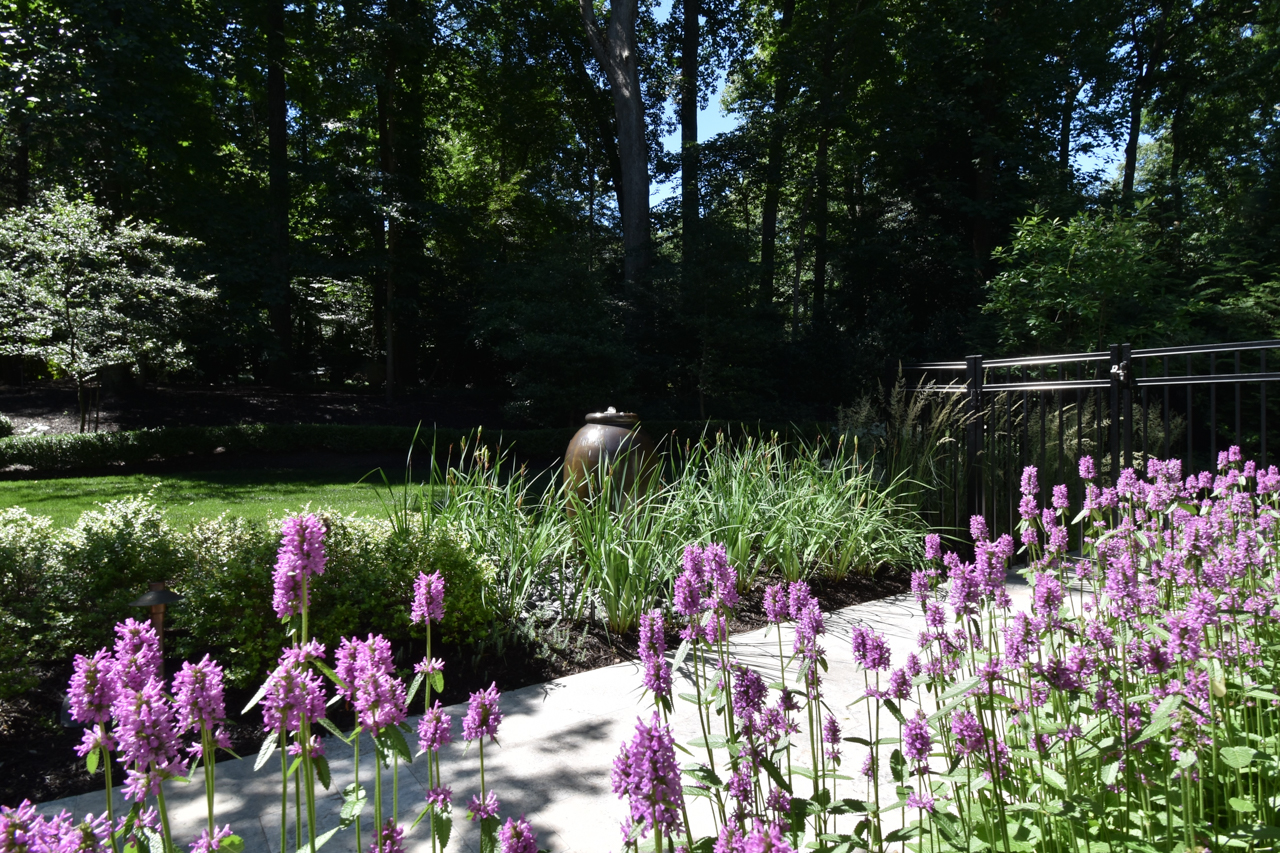 Our scope of work encompassed the entire property, featuring a vanishing edge pool, spa, outdoor fireplace, water feature, and several entertainment spaces paved with silver travertine. The project also included two driveway arrival courts and comprehensive planting, irrigation, and lighting throughout.