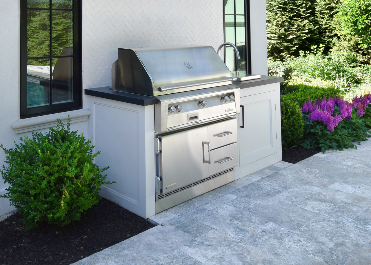 The home was already undergoing an extensive renovation when we were invited to join the team. Our goal was to design and build a luxurious, elegant outdoor living space that would complement the modern updates to the home. The client requested a simple, sleek, and functional design that seamlessly blended with the home’s architecture.